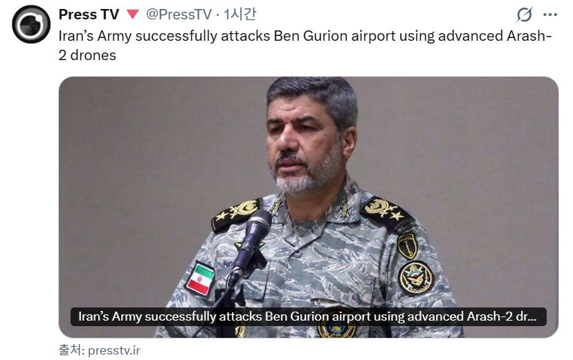 이란군이 자폭 드론으로 이스라엘 텔아비브 공항 때렸다고 자랑하고 있음. 이스라엘 경제 동맥을 끊어버리겠다는데 상황이 점점 극단으로 치닫는 중임. 건물 부서진 사진들 SNS에 막 올라오는데 ㄹㅇ 무섭네. 중동 전쟁이 남의 일인 줄 알았는데 세계 경제랑 직결된 거라 우리도 대비해야 할 듯.