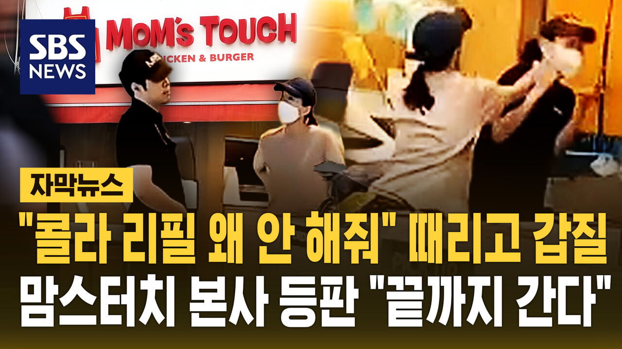 음료 리필 안 해준다고 계산기 부순 '맘스터치 진상녀' 영상 확산